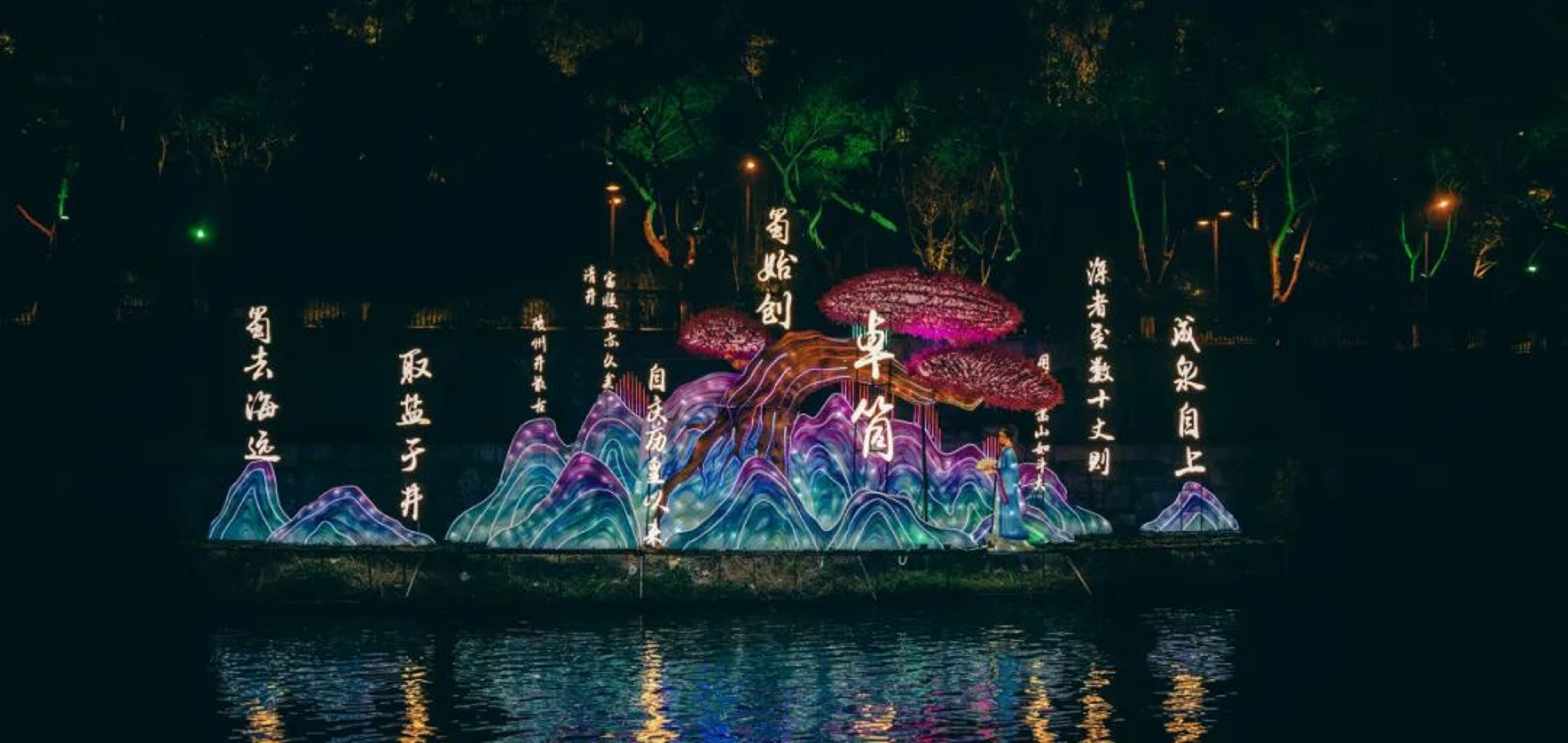 品質(zhì)是項目之魂。今年初,根據(jù)我市建設(shè)釜溪河鹽文化長廊的總體規(guī)劃,途觀公司以自貢井鹽文化發(fā)展時間為線索,串聯(lián)毛家壩碼頭至自流井老街沿河兩岸的彩燈和光影秀,新增《千年鹽都》等7個燈組,新設(shè)《梅澤逐鹿》等7個光影秀和投影秀,對東興寺大橋、水涯居大橋、善后橋進行再亮化,全新打造“一序七幕二十八景”的井鹽文化主題夜游場景,依次呈現(xiàn)自貢因鹽而興、以鹽聚人的歷史。