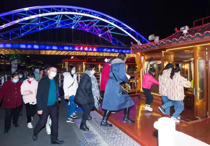 元旦假期期間,許多外地的游客慕名而來到“夜游釜溪”一睹《生命之樹》風(fēng)采,僅1月1日就有來自成都、重慶、德陽等地的近300名游客登上了游船。