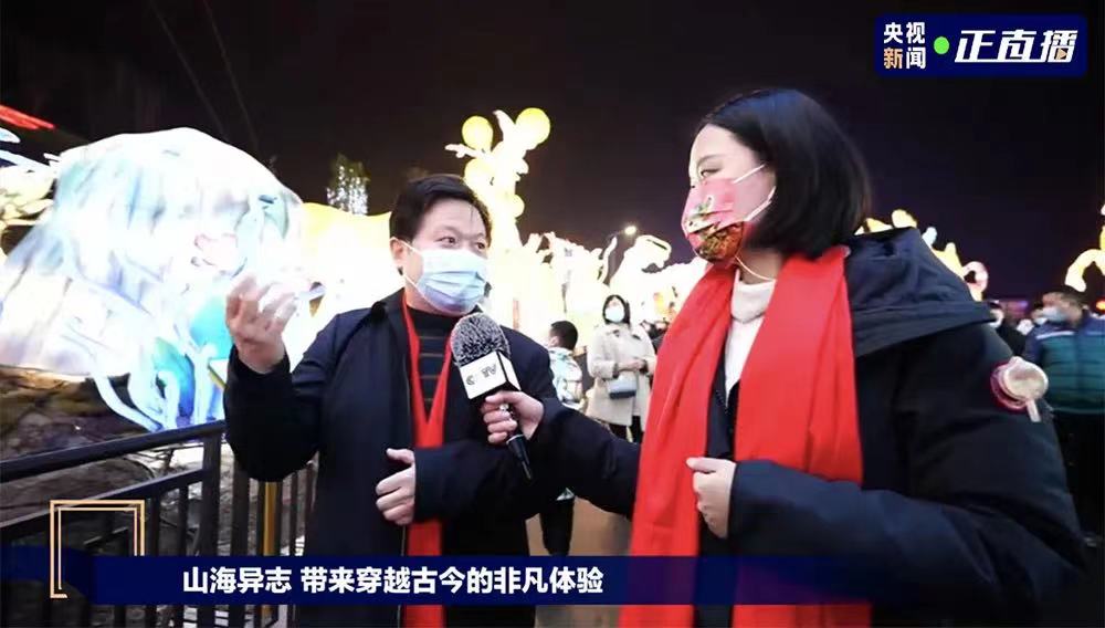 1月28日晚,總臺央視記者走進(jìn)第28屆自貢國際恐龍燈會,帶大家線上游覽自貢中華彩燈大世界的華燈盛景,自貢文旅投董事長宋青山作為燈組推薦官全程參與了直播。